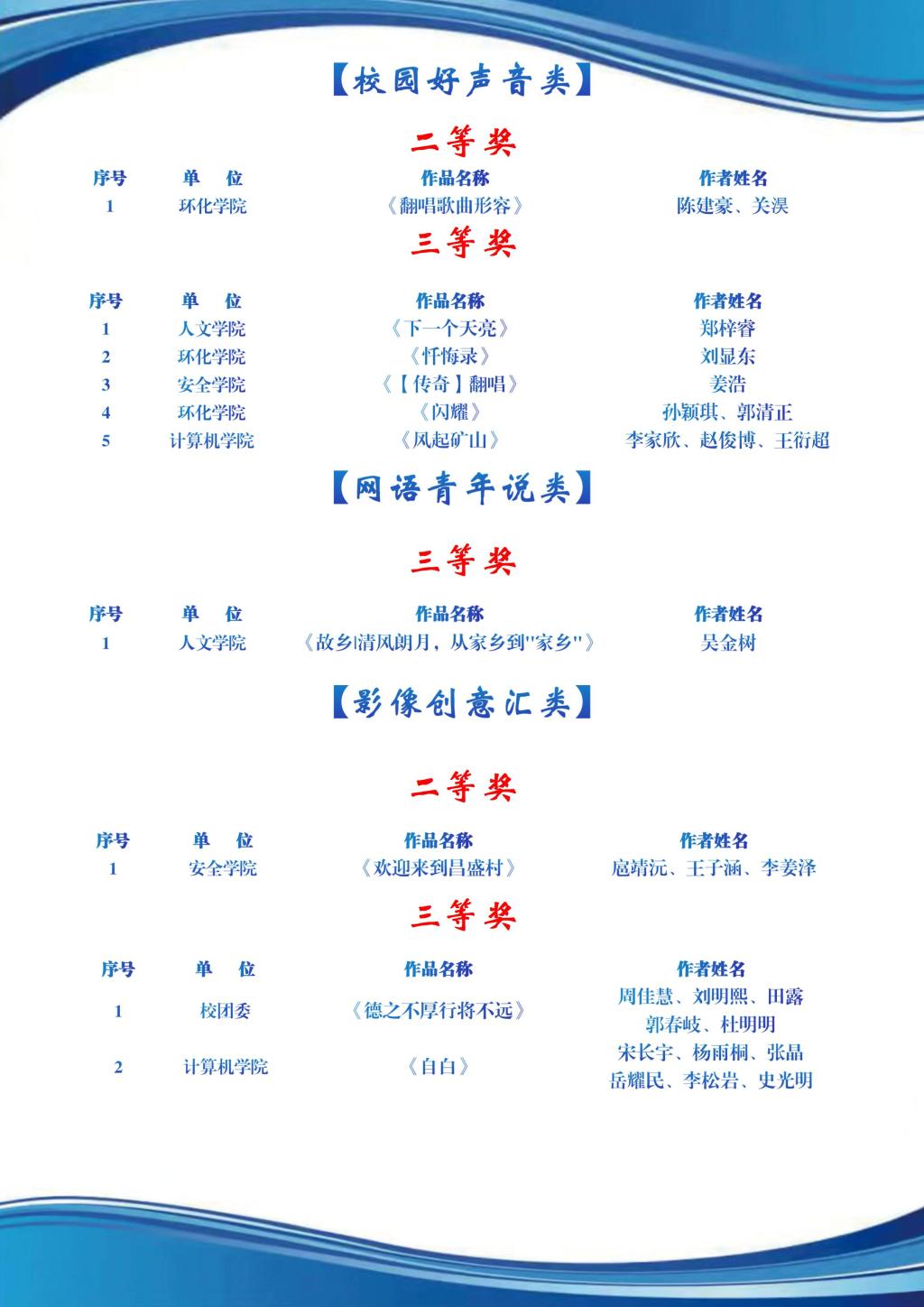 获奖名单