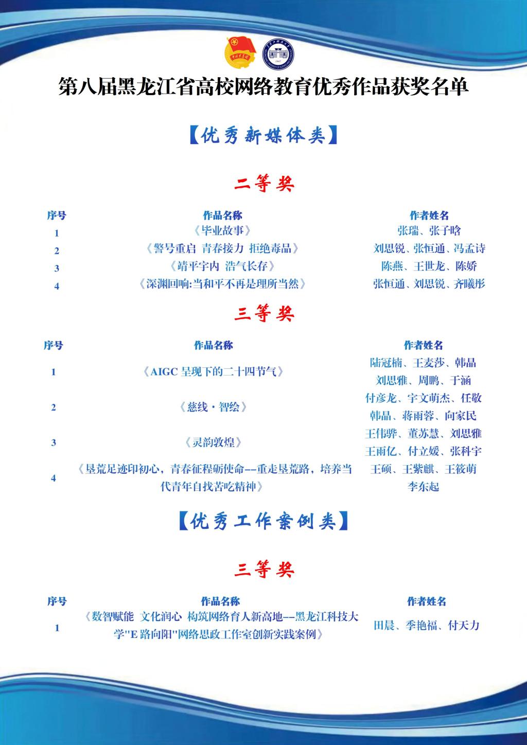 近日,由省委教育工委、省委网信办联合举办的第八届全省大学生网络文化节和全省高校网络教育优秀作品推选展示活动圆满落幕。我校师生积极响应、踊跃参与,校团委精心组织、严格遴选,共推报188项优秀作品参与省赛角逐。经专家评审,我校多项作品脱颖而出,奖项的取得是我校创新网络育人机制载体,优化网络文化内容供给的生动实践。