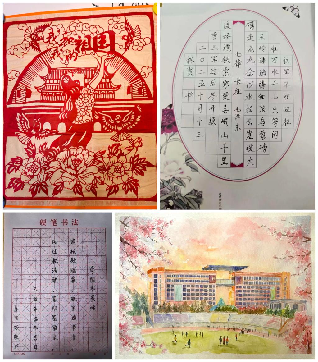 学院团委组织开展“墨润校园承赤心,笔绘山河颂华章”主题书画作品展,青年学生以祖国山河、红色故事、校园风貌等主题创作,将书法、国画等传统文化元素融入作品,让爱国热忱通过笔墨自然流露,以艺术创作筑牢红色记忆。