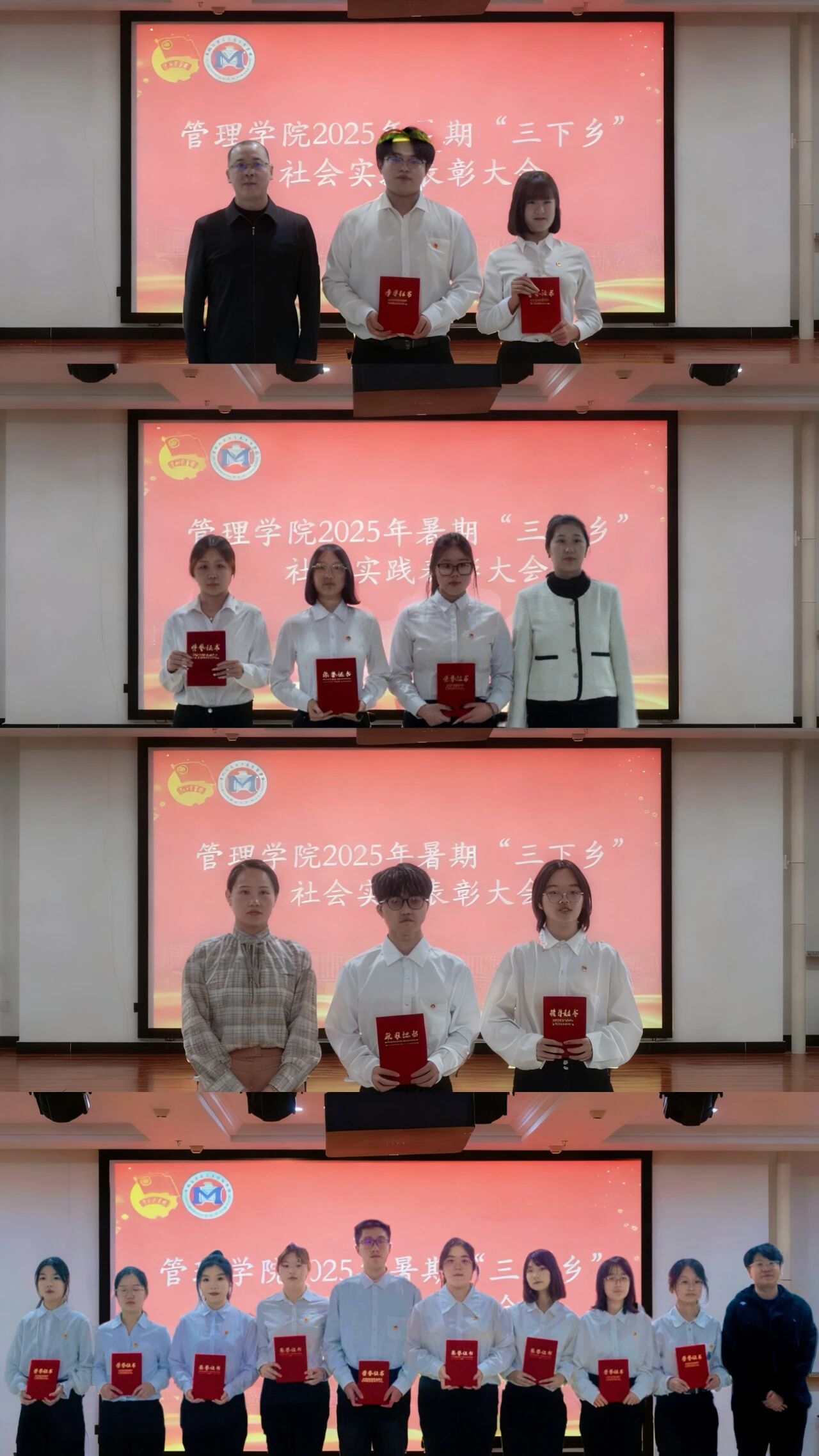 本次社会实践表彰大会不仅总结了成果、表彰了先进,更凝聚了管理学院推动实践育人的共识。下一步,管理学院将持续深化“三下乡”社会实践成果与专业学习、思政教育、就业创业深度融合,引导更多青年学生以实干笃行书写青春华章,为中国式现代化建设贡献青春力量!