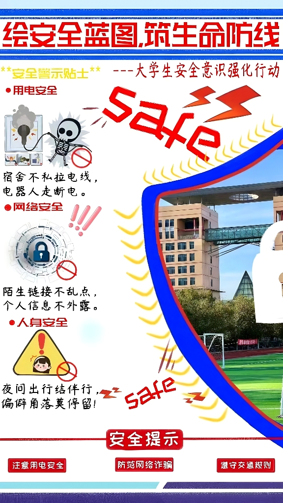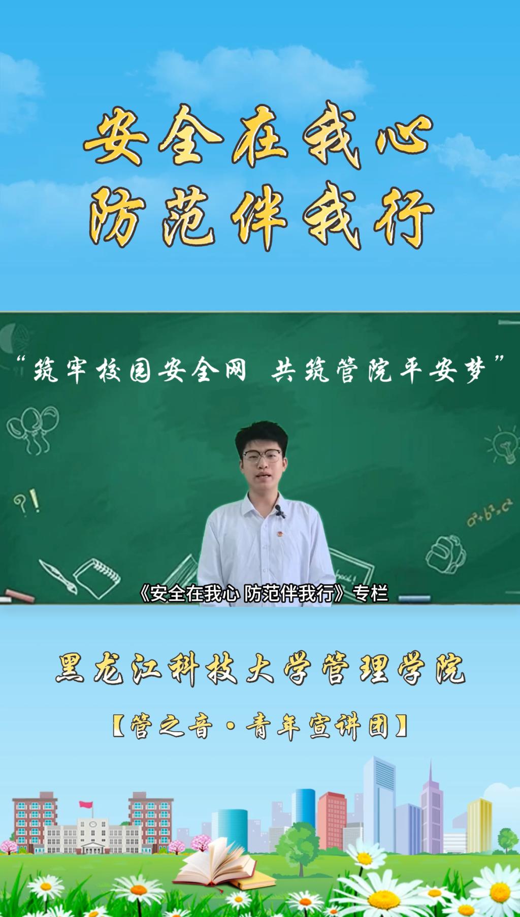 主题宣讲凝共识,创意设计赋新能。学院团委举办“绘安全蓝图,筑生命防线”创意设计大赛,以海报、漫画、短视频等形式,将安全知识转化为鲜活作品,有效激发了团员青年学习安全知识积极性和主动性,让安全理念真正融入学习生活。“管之音”青年宣讲团成员工管23-1班高斌然,以“安全在我心,防范伴我行”为题,结合典型案例解析安全风险点,切实提升团员青年风险辨识和应急处置能力,进一步推动安全理念在校园内落地生根,为构建平安和谐校园注入青春活力。