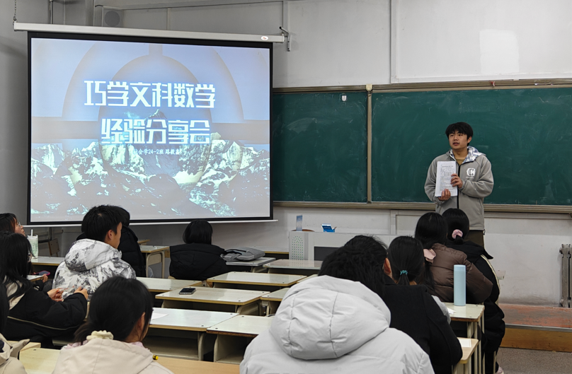 为加强学风建设教育引导,帮助学生厘清在文科数学学习中的困惑,助力同学们梳理知识重难点、搭建高效学习框架,人文学院团委于11月19日开展“巧学文科数学”经验分享会,本次活动邀请了社会学24-2班学生代表路毅鑫,他结合文科学生的思维特点与自身学习心得,为2025级社会学、社会工作专业同学带来一场针对性强的学业辅导,为大家提供实用的学习思路与方法参考。