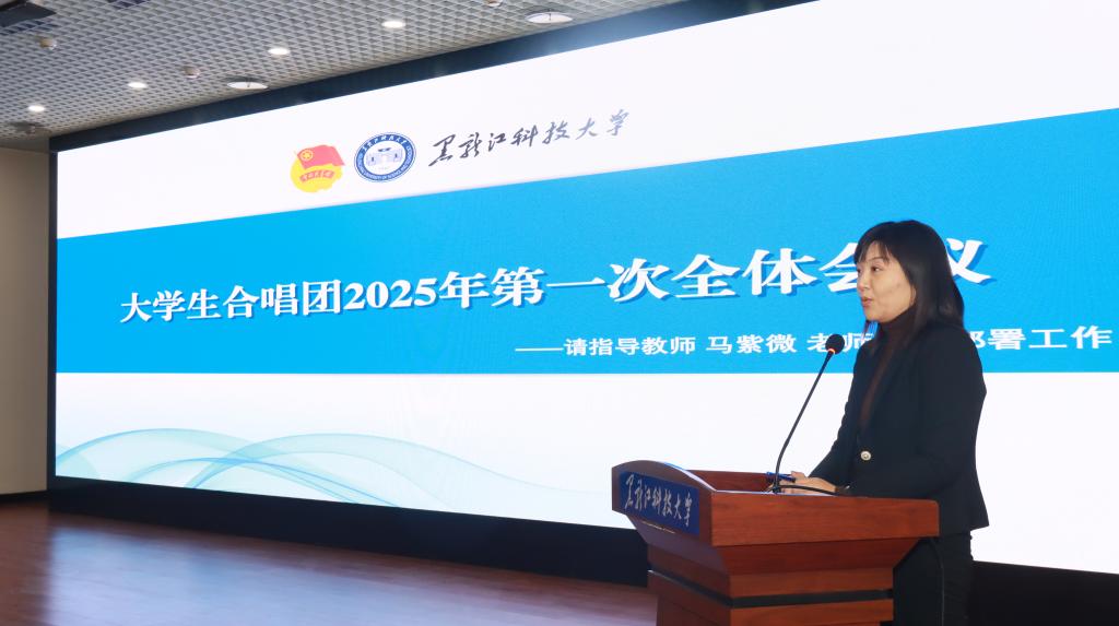最后,马紫微对大学生合唱团全体成员提出了四点希望:一要“守初心”,以思想为舵,锚定团队发展方向。将合唱团“三和精神”内化为团队独特的文化标识,不断擦亮合唱团的品牌,让团队的魅力焕发新的光彩。二要“强本领”,以专业为基,深扎艺术成长沃土。重点做好指挥与伴奏人才的培养,深耕专业水平和节目特色,让经典曲目唱出“新韵味”,让特色节目亮出“高水准”。三要“重学业”,以学业为根,统筹学习工作节奏。要严守学业底线,学会相互督促,让“艺术共进、学业同优”成为合唱团的新风尚。四要“创佳绩”,以实践为翼,展现科大学子风采。要在日常训练中以“演出标准”要求自己,打磨一系列高质量的作品,让更多人听到科大学子的“青春和声”。
