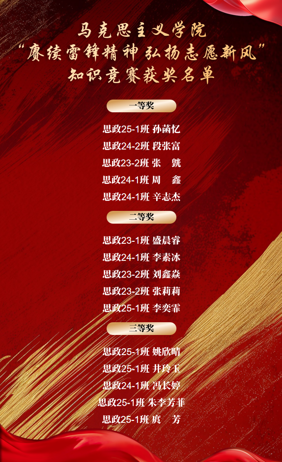 通过本次知识竞赛,学院学生在答题比拼中重温雷锋先进事迹,深化对雷锋精神内涵的理解,夯实了践行志愿精神的思想根基,引导学生弘扬雷锋精神、积极参与志愿服务,以实际行动书写新时代的雷锋故事。