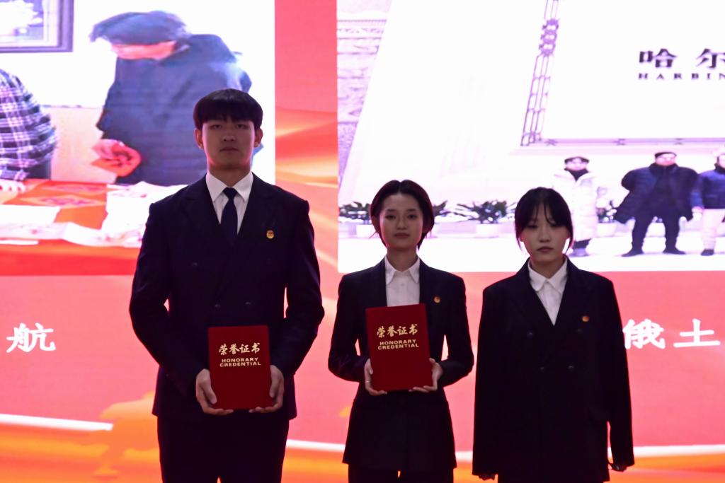 会上,学院播放了寒假“返家乡”社会实践成果视频,表彰环节,学院依次为寒假社会实践优秀调研报告、优秀先进个人、优秀实践团队获奖代表颁奖。中俄土木24-1班刘佳鑫、城规24-1班张若铭、风景24-1班黄志文作为优秀实践代表登台发言,他们结合自身“返家乡”实践经历,讲述将青春力量与专业所长融入基层服务、在一线走访调研中锤炼实践本领的真切体验,畅谈实践过程中的成长感悟与收获。