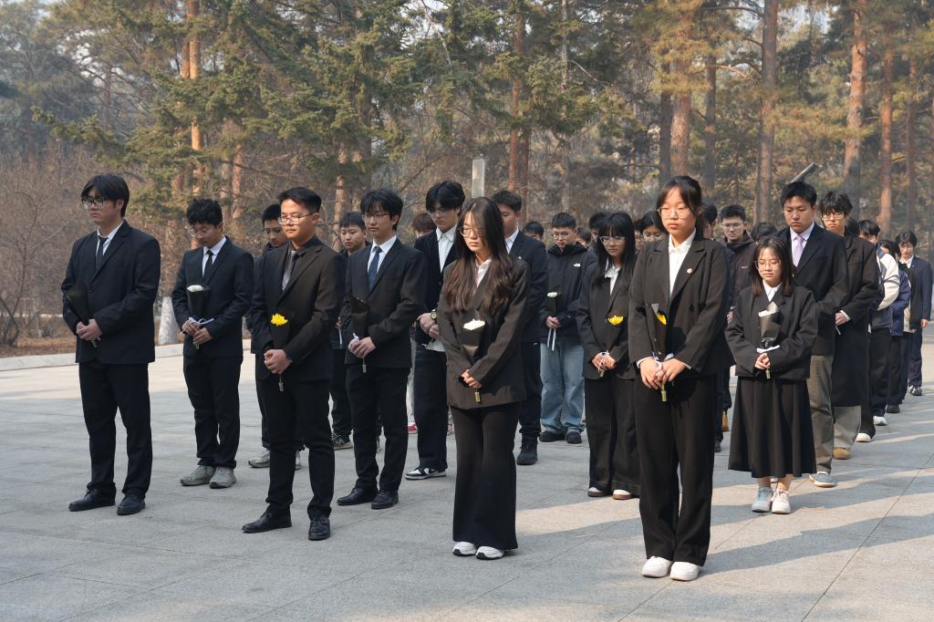 活动伊始,全体师生在烈士纪念碑前整齐列队,向为民族解放和人民幸福英勇献身的革命先烈敬献鲜花,集体默哀三分钟,表达深切缅怀与无限崇敬。