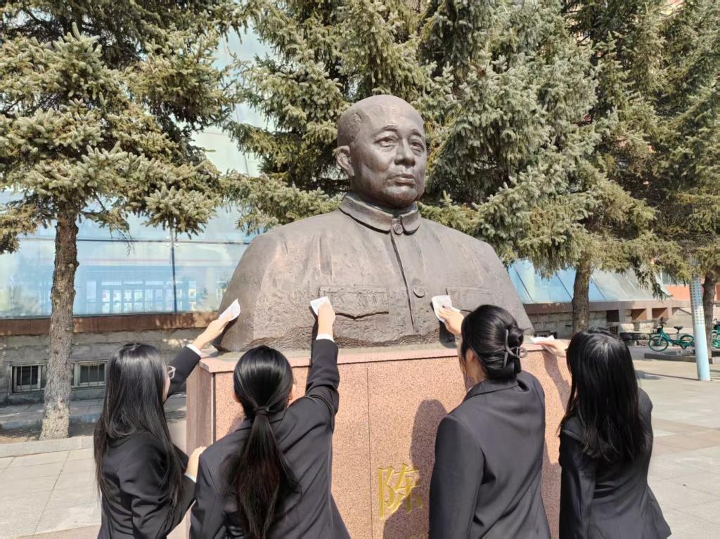 3月27日,经济学院团委志愿服务团在陈郁雕像处开展“清明祭英烈,鲜花寄哀思”清明节献花志愿服务活动,缅怀革命先辈,传承红色基因,厚植青年学子的爱国情怀。